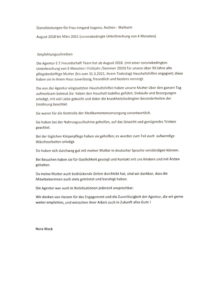 ohne sich um Ihre Liebsten Sorgen zu müssen, denn wir übernehmen Aufgaben wie: